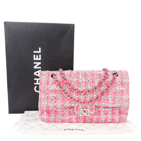 Chanel Quilted Tweed Palladium Double Flap Crossbody Bag